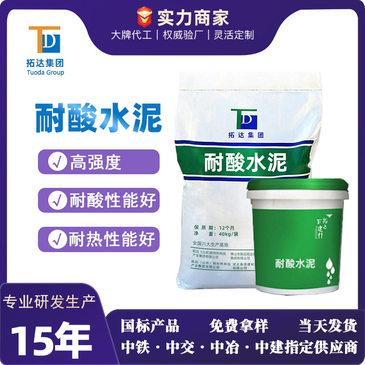 耐酸水泥是選用耐酸性較高的耐酸粉料以及添加劑配置而成,使用時配以合適模數(shù)的水玻璃,混合使用。根據(jù)使用部位,可以配置成耐酸膠泥、耐酸砂漿和耐酸混凝土。因反應(yīng)生成未定的-si-o-si-結(jié)構(gòu),所以此材料可以耐受大多數(shù)無機(jī)酸,同時具有優(yōu)良的耐熱性能和較高的力學(xué)性能,可以用于大多數(shù)的耐酸工程和耐熱煙道等部位。
